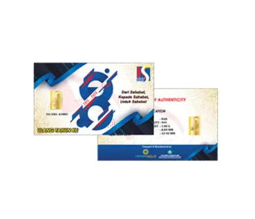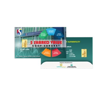 Wafer emas 999 ditampilkan dengan pelbagai rekabentuk bercirikan produk dan perniagaan Koop Sahabat.